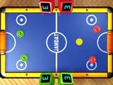 Some people know the game as shuffle puck, table hockey, shuffleboard, and no doubt other name variations. Air Hockey is a game where two players each use a disc-shaped “mallet” (or “hammer”) to hit a “puck” around a table. The table has a perforated surface through which air is blown by a fan - the air provides a cushion for the puck, which literally floats around the table due to the reduced friction. Each player defends a “goal”, which is simply a slot that is several puck-widths wide, and basically the first player to score 7 goals wins.