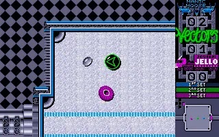 Although I give Zack Norman credit for the idea of doing an Air Hockey game, in fact, the mobile game came about directly because of another game I designed and developed some 16 years or so ago. The game was Projectyle, which was published (ironically, as it turns out) by Electronic Arts for Atari ST and Amiga in about 1991. Projectyle was not a one-button game, and it wasn’t that Zack had been a huge fan, or anything like that (I doubt he knew it existed), but I had obtained the rights to the game from EA and as I’ve mentioned previously, there does exist a playable mobile version of the game. In fact, it was this version of Projectyle, running on a Microsoft Smart Phone as I recall, that I showed to Zack, this would be E3 2004, and it was Projectyle that piqued Zack’s interest in developing an Air Hockey game with me. Projectyle (the original) was a three-player game (using keyboard and multiple joysticks) which I’ve described previously as a cross between Air Hockey and Subbuteo. The mobile version of the game supported Bluetooth, three-player multiplayer. The mobile versions remain unfinished and unpublished.